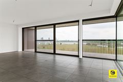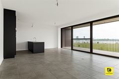 Bij binnenkomst valt de lichtrijke woonkamer meteen op. Het woongedeelte is voorzien van een hedendaagse open keuken met zwarte kasten, moderne inbouwapparatuur en een praktische keukeneiland. De grote raampartijen over de volledige breedte van de woonkamer vergroten het ruimtegevoel en bieden direct toegang tot een royaal terras. Het panoramisch uitzicht over het Galgeweel en de Antwerpse skyline is de kers op de taart. Kortom de perfecte plek om op een warme zomeravond van de rust te genieten.