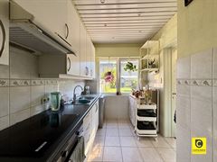 De keuken kan je betreden via de eetkamer en beschikt over een mooi uitzicht over de riante tuin.
