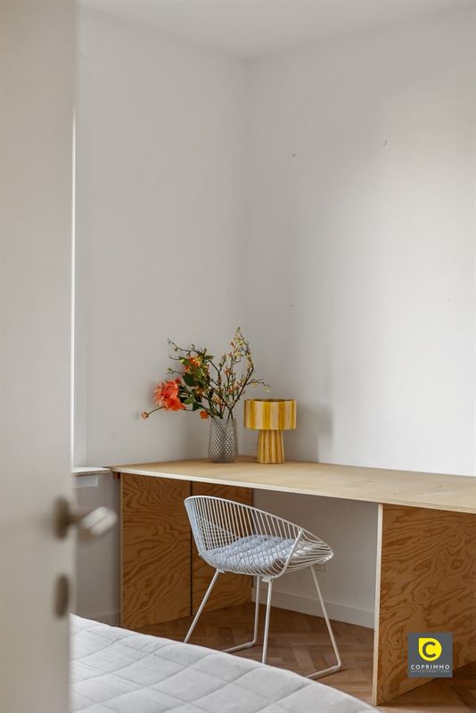 Gelegen op de 5de verdieping en met een bewoonbare oppervlakte van ca. 115 m², combineert deze woning tijdloze elegantie met hedendaags comfort. De grote raampartijen trekken het daglicht royaal naar binnen en zetten het weidse stadszicht volledig in de spotlight.