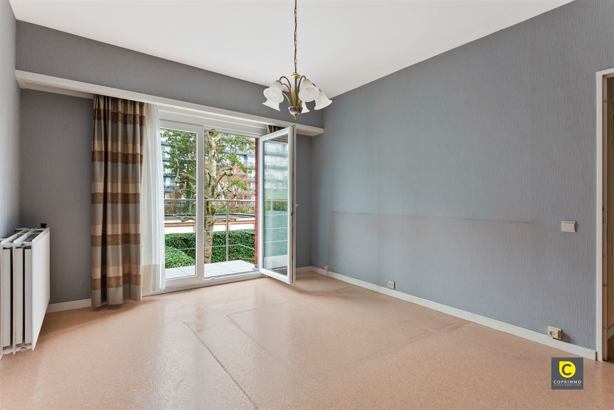 De aparte inkomhal voorziet in een parlofoon, een grote ingemaakte vestiaire, een kleine bergkast en rookmelder. Het ruimtegevoel in de woonkamer (32m²) wordt extra in de verf gezet door de alomtegenwoordige natuurlijke lichtinval en het groene uitzicht. Authentieke elementen zoals de moluren, de gordijnkasten en de "vintage" wand- en vloertegels geven het appartement nog dat extra tikkeltje karakter. Aanpalend de leefruimte vindt u de keuken, dewelke indien gewest ook kan worden opengetrokken. Veel werk- en opbergruimte is voorzien, evenals een aansluiting voor uw wasmachine, maar keukentoestellen dient u zelf te voorzien (op de dampkap na). Met rechtstreekse toegang tot het terras is het steeds mogelijk om lekker te tafelen in de gezonde buitenlucht.