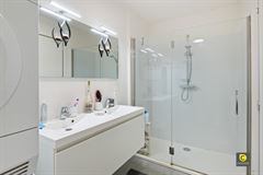 De badkamer is stijlvol en praktisch ingericht, met een ruime inloop douche en een zwevend lavabo meubel met spiegel. Voor extra gemak is er ook een apart (gasten)toilet aanwezig.