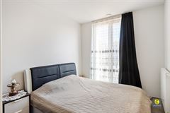 Het appartement beschikt over een comfortabele slaapkamer, die dankzij het grote raam veel natuurlijk licht ontvangt, waardoor de ruimte extra uitnodigend aanvoelt.