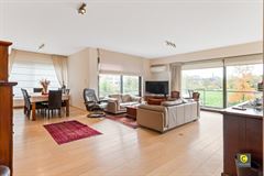 Via de lift of de trap bereikt u dit appartement op de eerste verdieping. De ruime inkomhal is voorzien van een ingemaakte vestiairekast. De lichtrijke woon- en eetkamer van ca. 55 m² is afgewerkt met kwalitatieve parketvloeren en biedt een bijzonder aangenaam ruimtegevoel. Hier bevindt zich bovendien een airco. Dankzij de grote raampartijen geniet u de hele dag door van natuurlijke lichtinval. Vanuit de leefruimte heeft u toegang tot het zonnige, zuidwest georiënteerde terras met een mooi open zicht, ideaal om te ontspannen in alle rust.