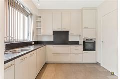 De volledig uitgeruste keuken beschikt over voldoende opbergruimte en ingebouwde toestellen zoals kookplaat, oven, microgolf, vaatwasser, dampkap en koelkast. Aansluitend bevindt zich een praktische was- en bergplaats met aansluiting voor wasmachine en droogkast.